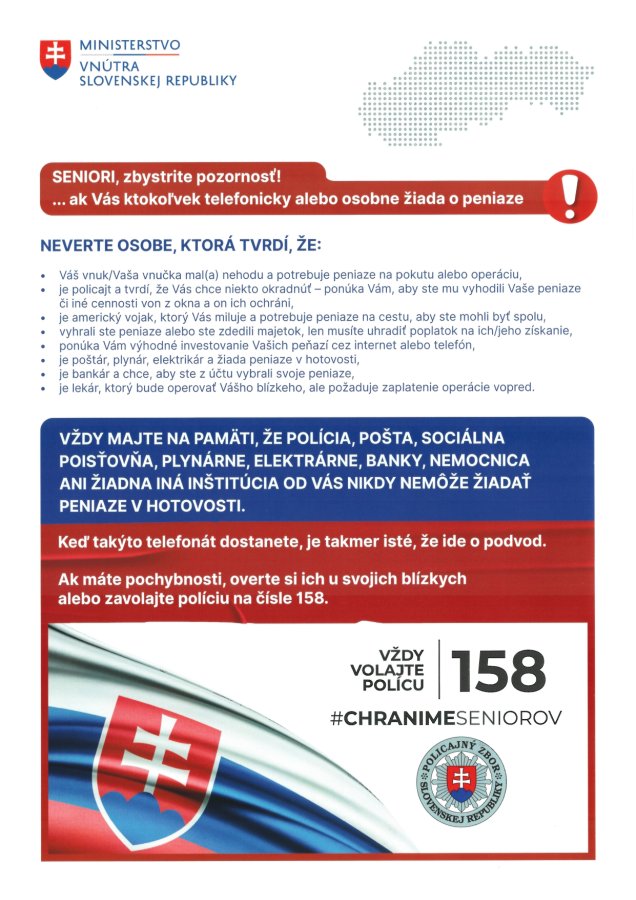 Leták pre seniorov - nedajte sa okradnúť