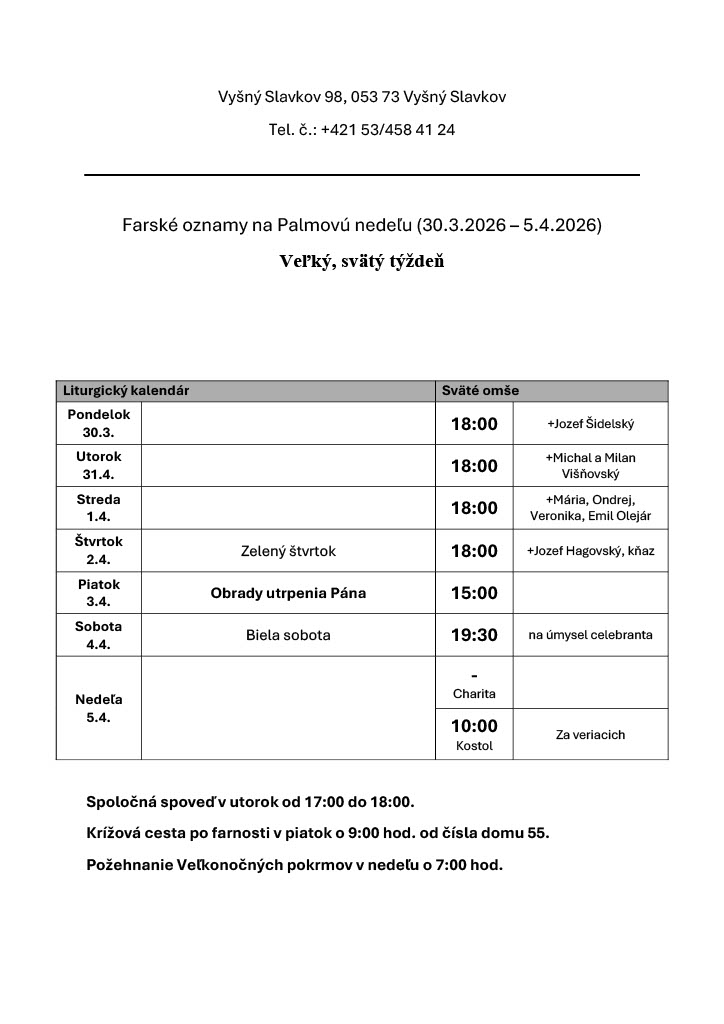 Farské oznamy na 14. týždeň